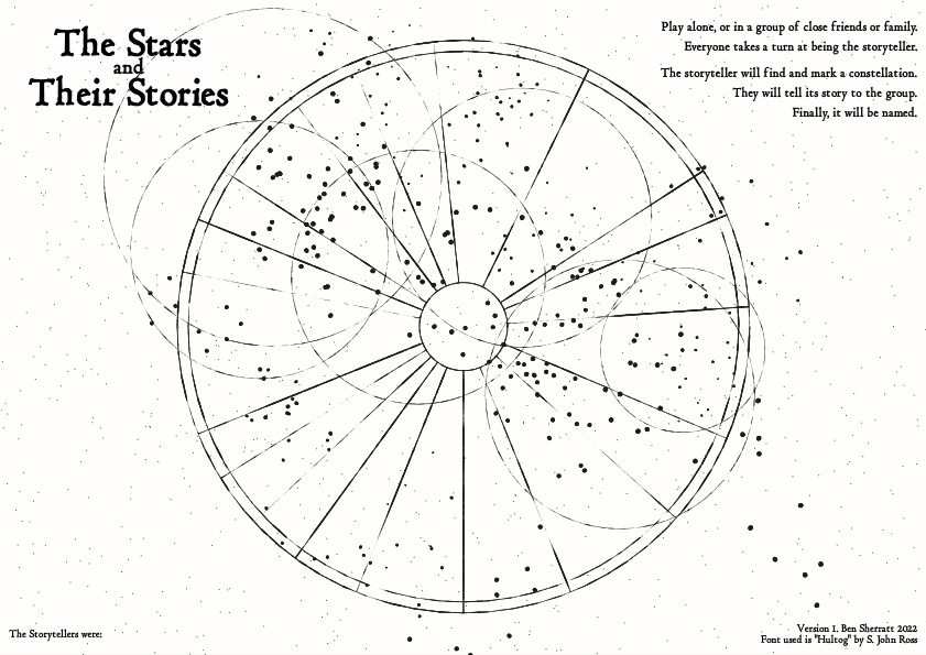 Tabletop journaling game for 1+ player(s) about finding constellations on a star map.